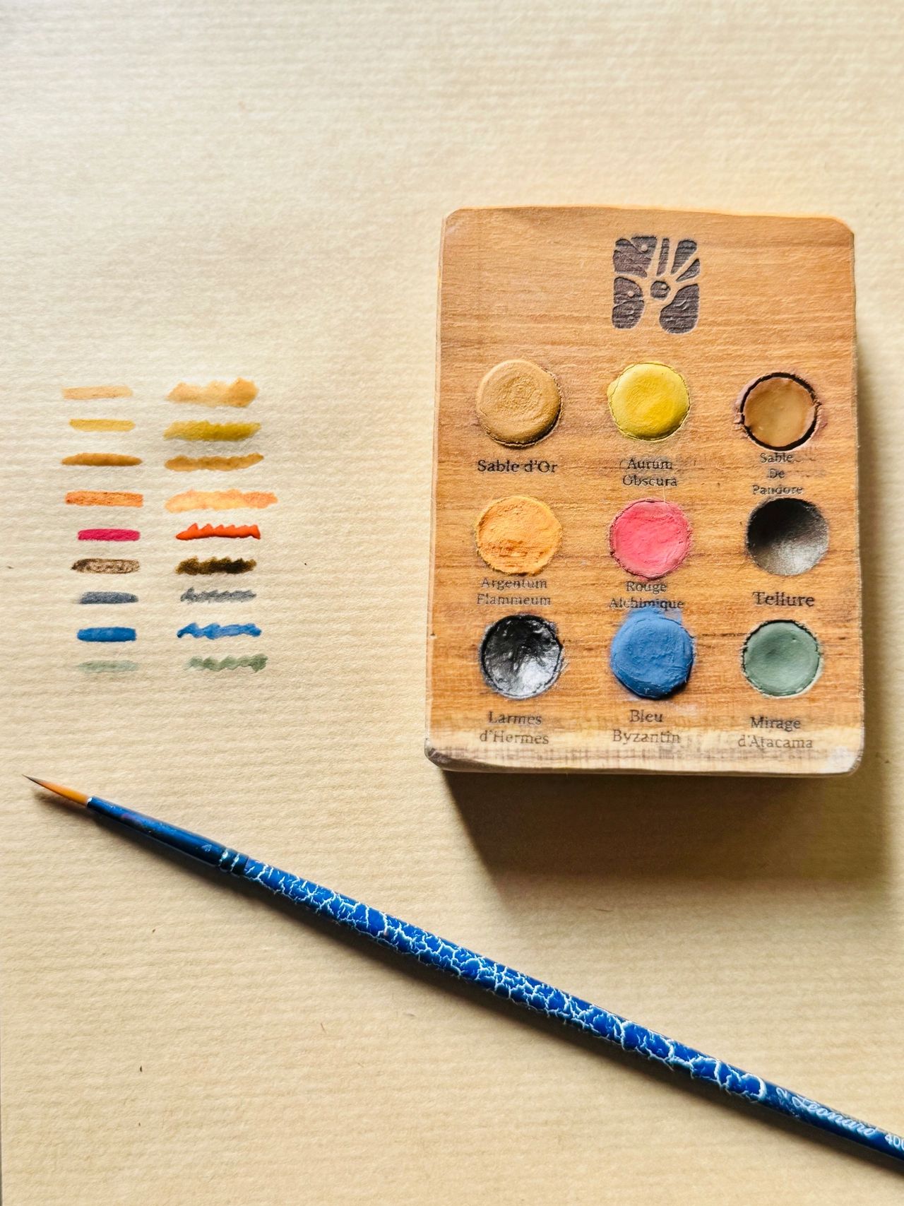 Quand je crée une couleur à partir d’un minéral, je ressens vraiment que je peins avec du vivant. Pas avec un colorant synthétique au doux nom de PB29 (oui, le bleu outremer, ce bleu sublime au nom d’imprimante — moins poétique, on est d’accord).